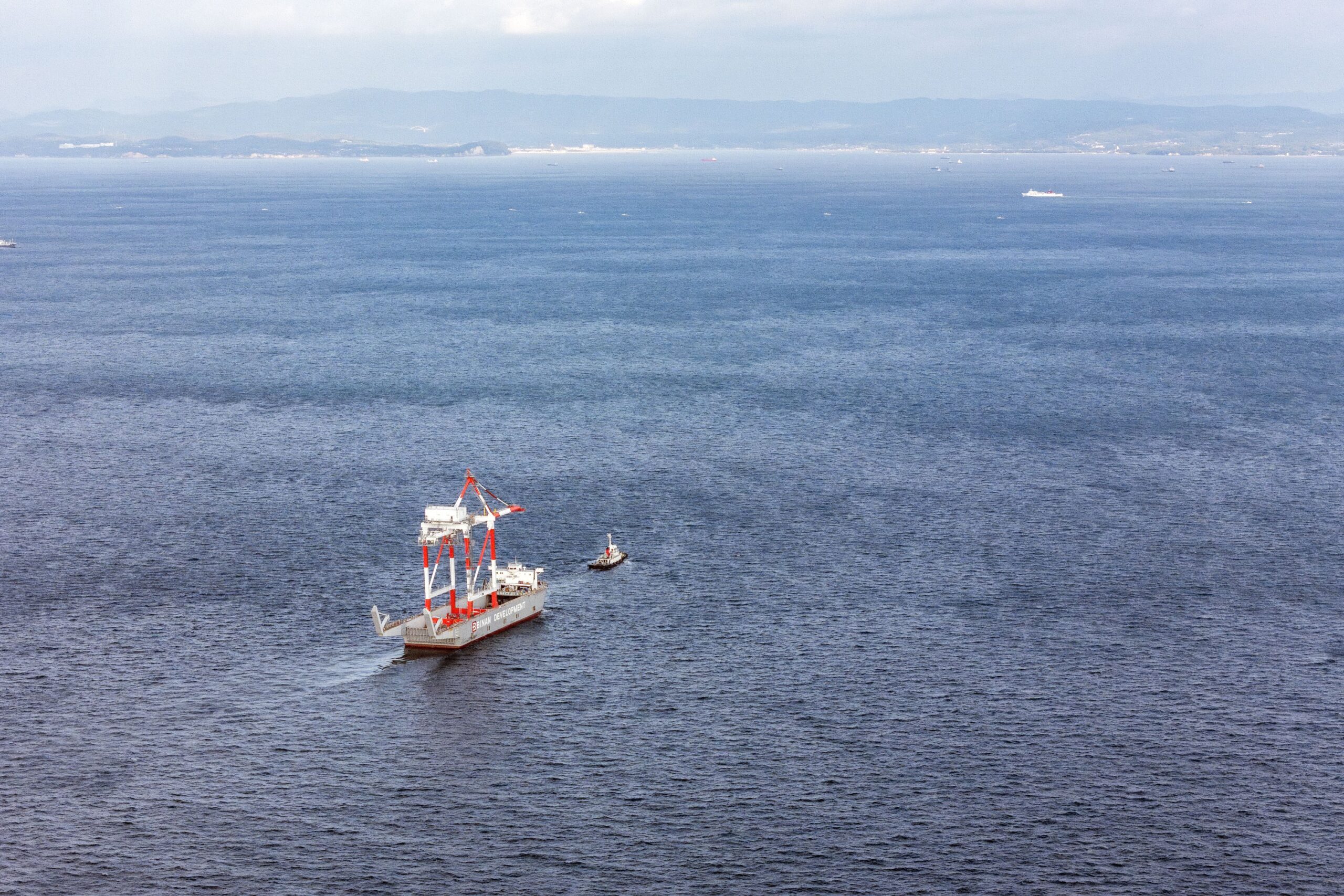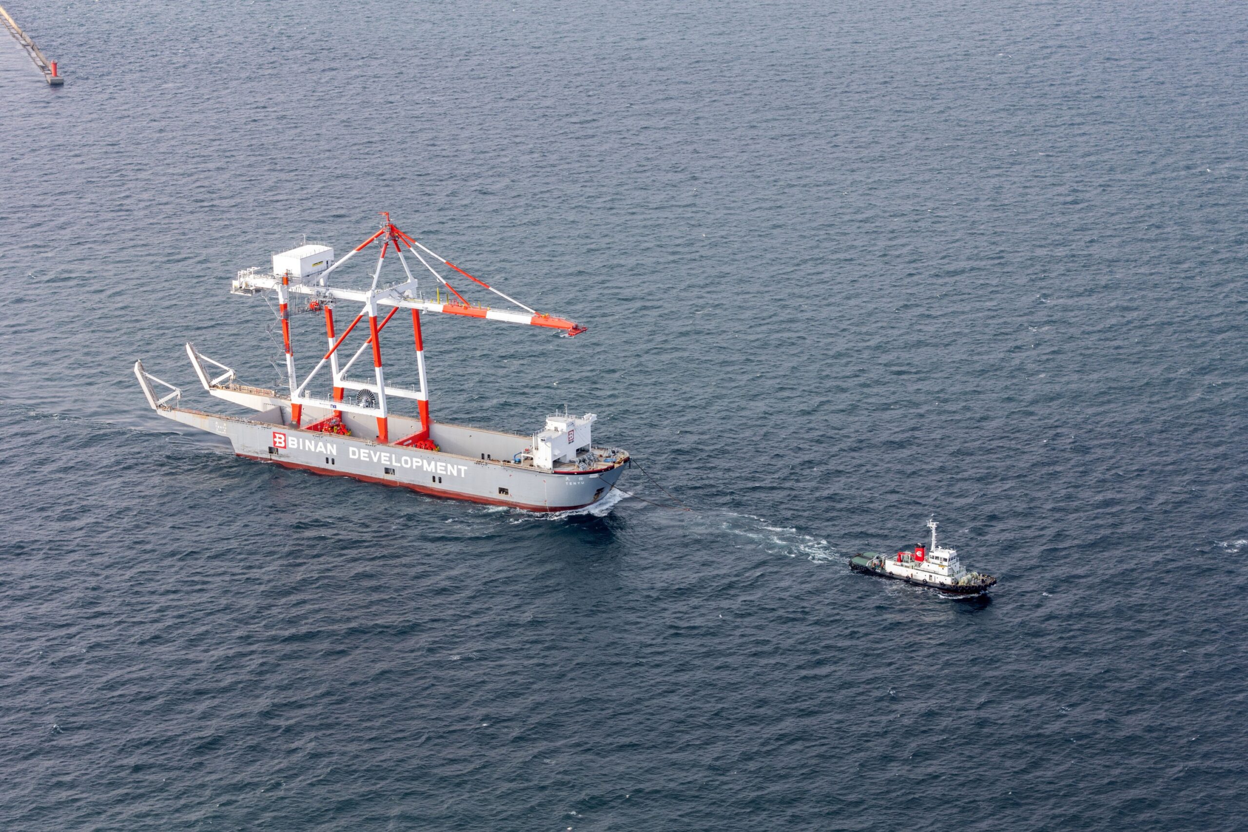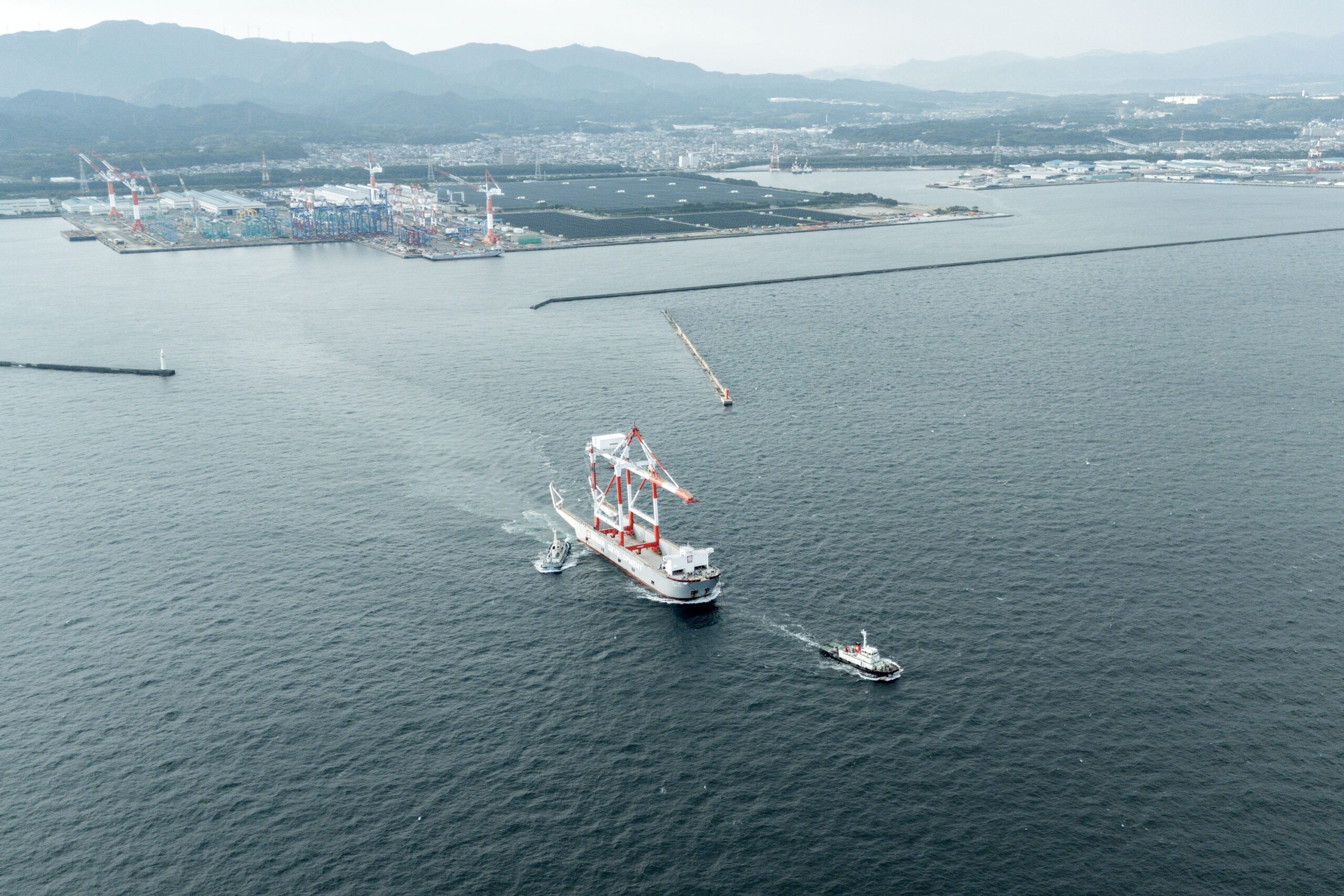 【大分港】 大分港出港中の「古鷹丸」と台船「天佑」です。(2025年11月19日)